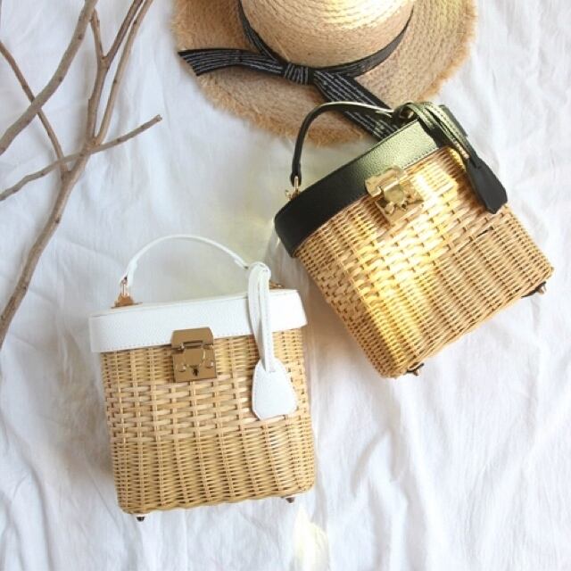 高級感のあるゴールドロック付きのスクエア型籠バッグ♡