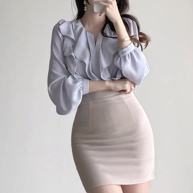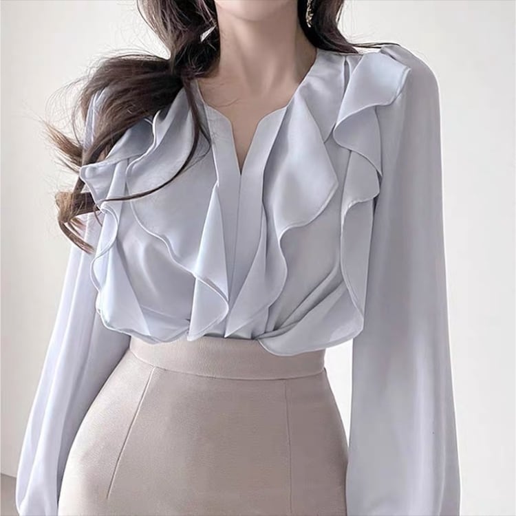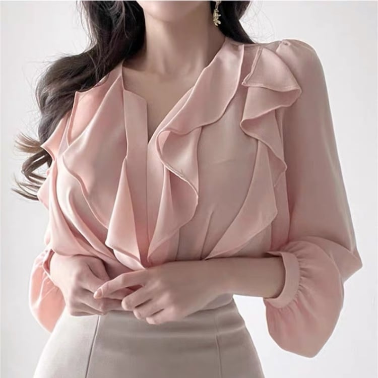 淡いカラーとフリルデザインが可愛らしいブラウス❤