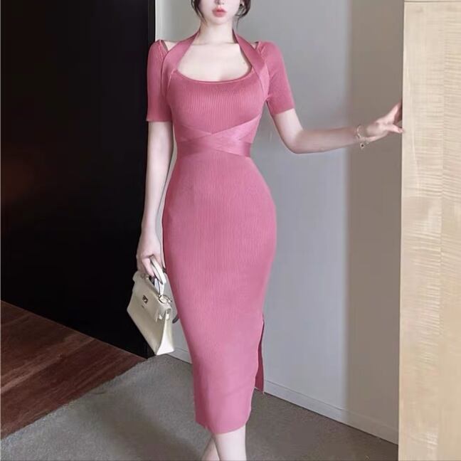 スタイルアップ大人気のレースアップタイトワンピースの半袖バージョンが登場♡