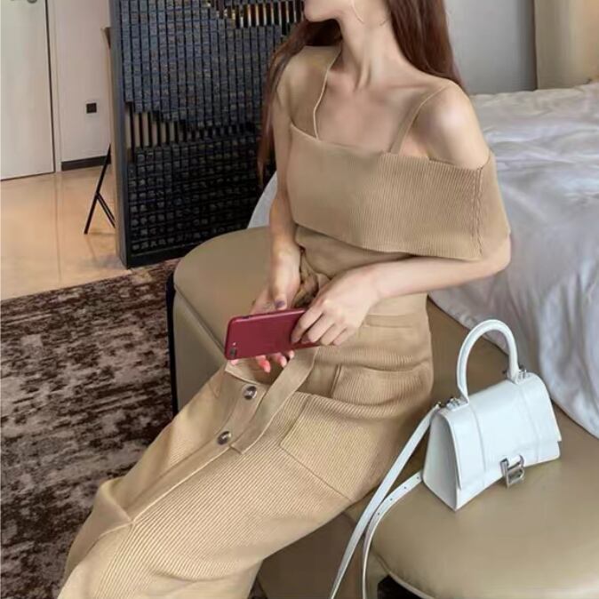 ショルダー部分のアシメントリーなデザインがお洒落なニットワンピース♡
