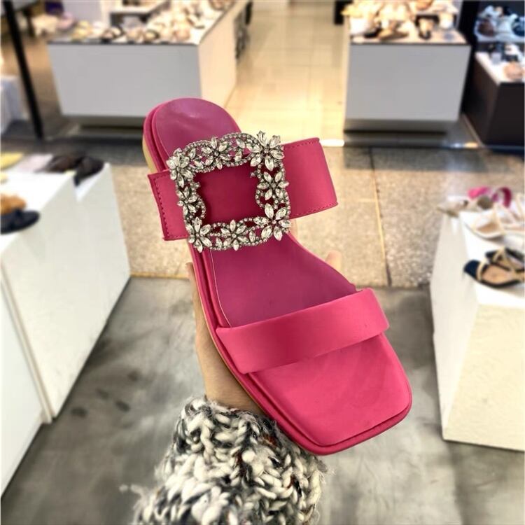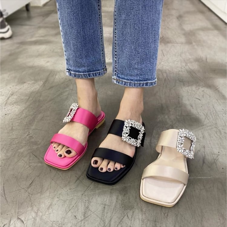 大き目のビジューがポイントのスクエアトゥサンダル♡