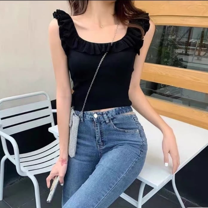 シンプルでありながらデコルテラインのフリルが可愛らしいトップス♡