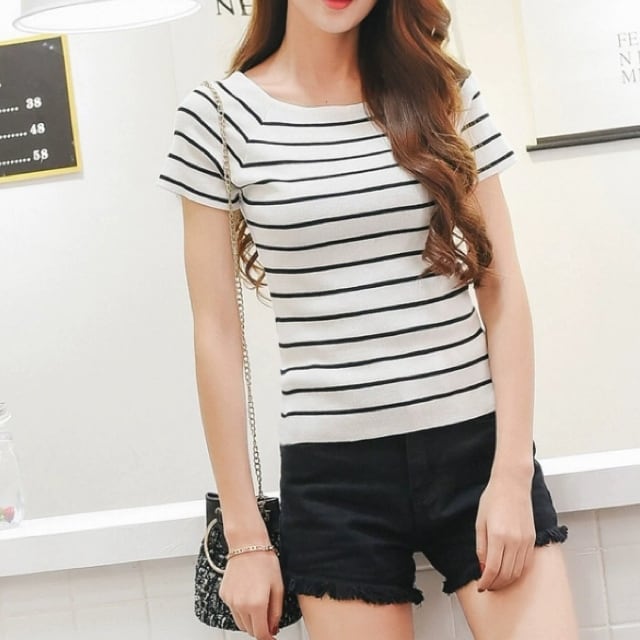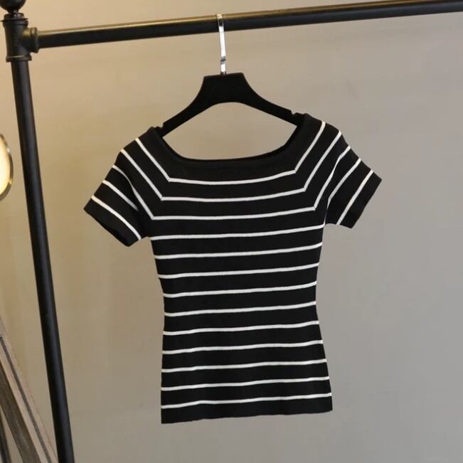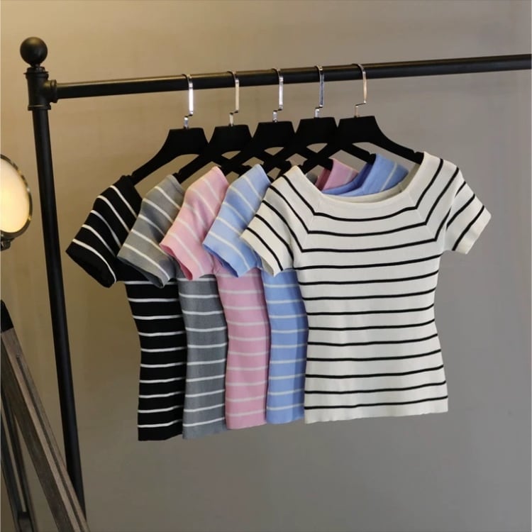 合わせやすく使いやすいボートネックのボーダートップス♡
