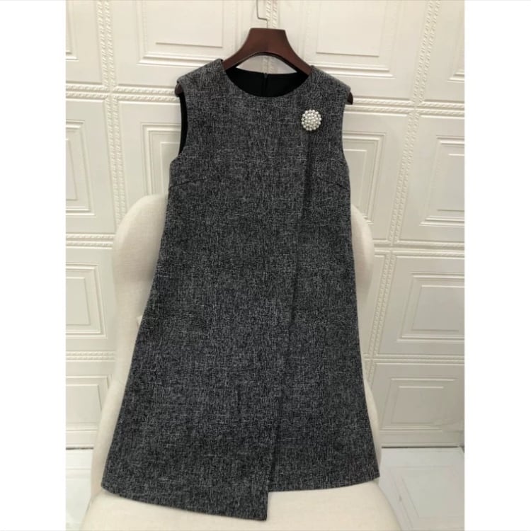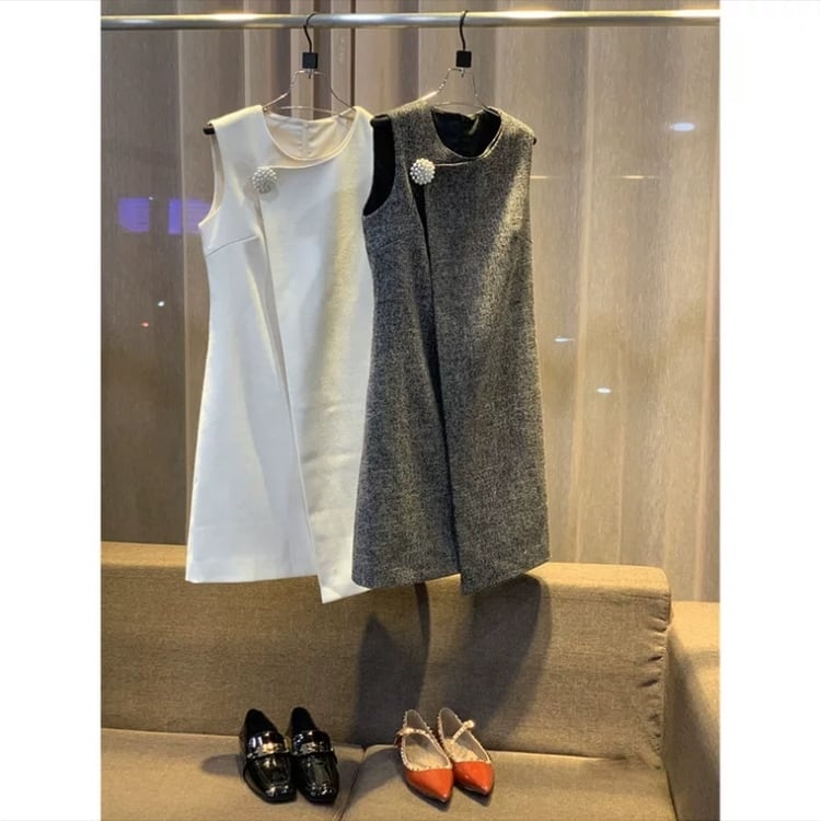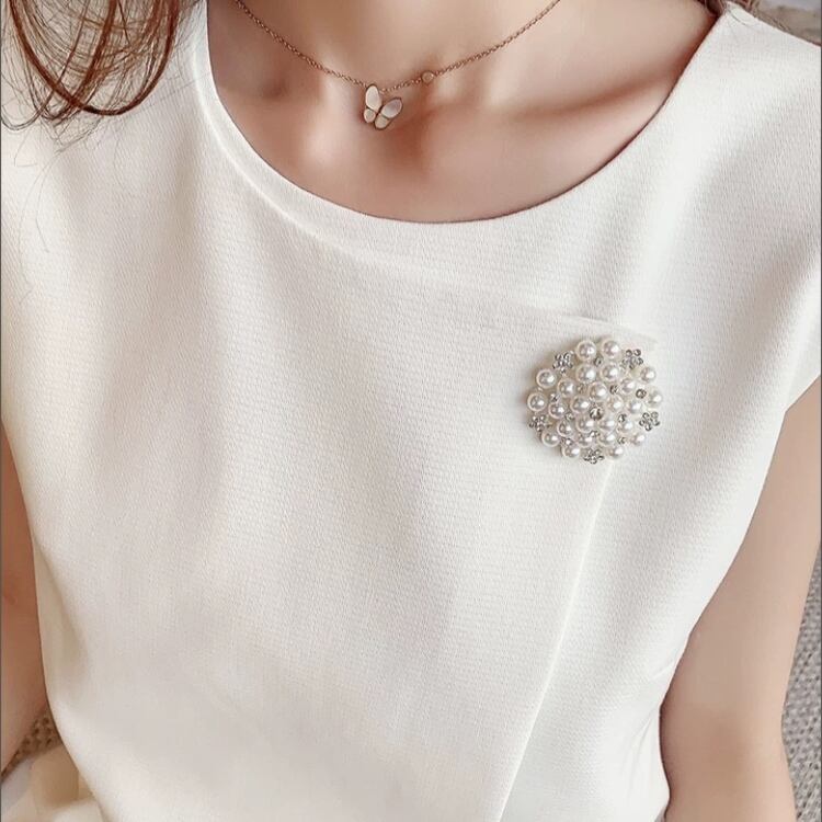 パールビジューのブローチがワンポイントのAラインワンピース♡