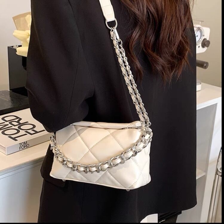 ダイヤ柄のキルティングにシルバーチェーンが映えるワンショルダーチェーンバッグ♡