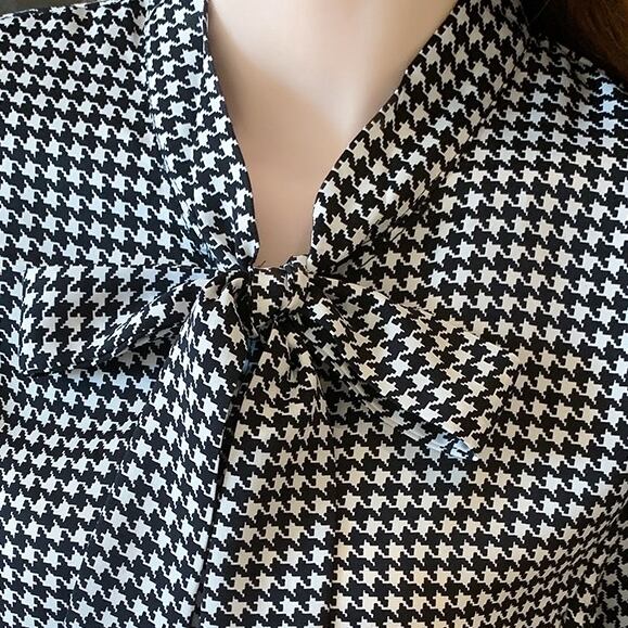千鳥格子柄ボウタイブラウス