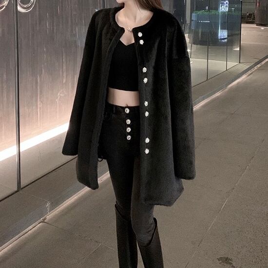 ノーカラーデザインで女性らしいコーデに仕上がります。