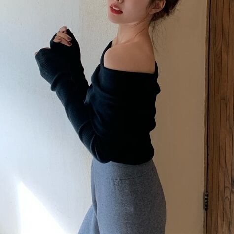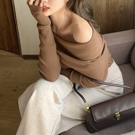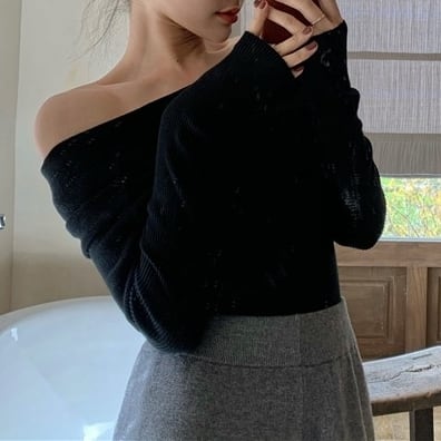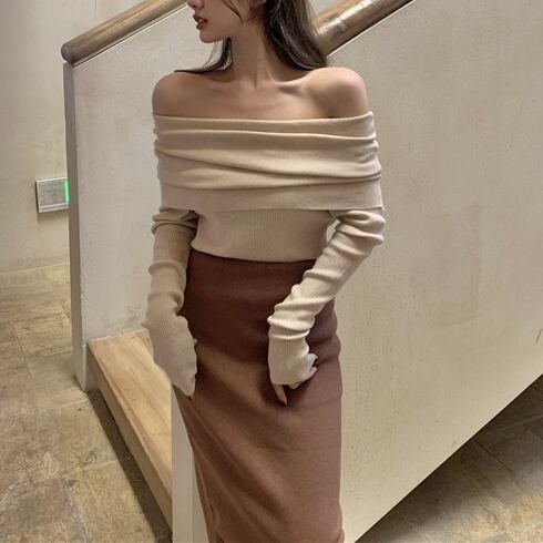 折り返しオフショルダーニット