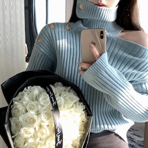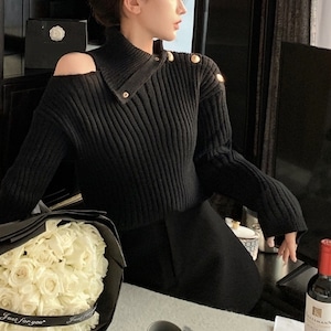 オープンショルダーハイネック2wayニット