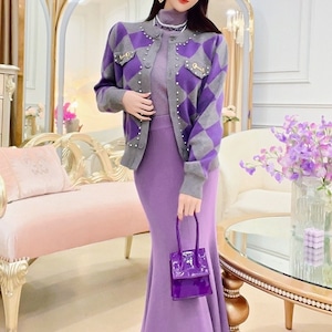 アーガイル柄デザインカーディガン