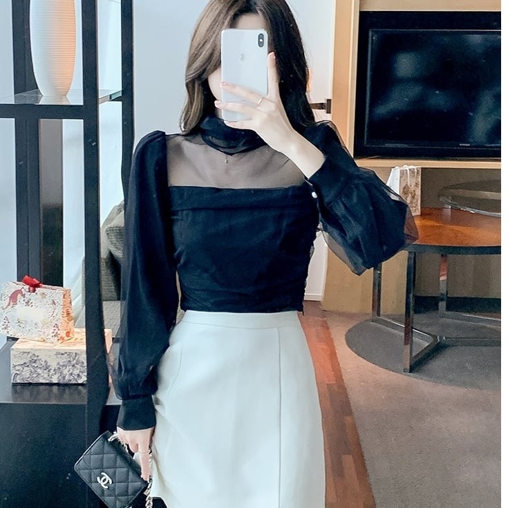 デコルテシアーシフォンブラウス
