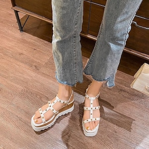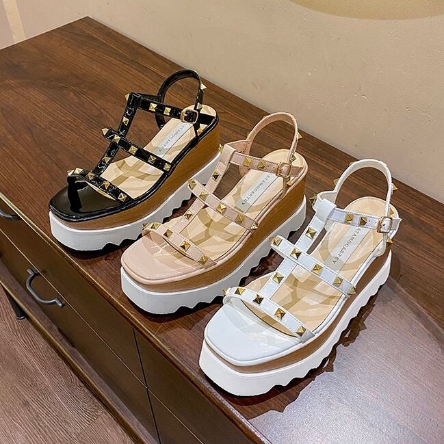 スタッズがかわいい厚底サンダル❤︎