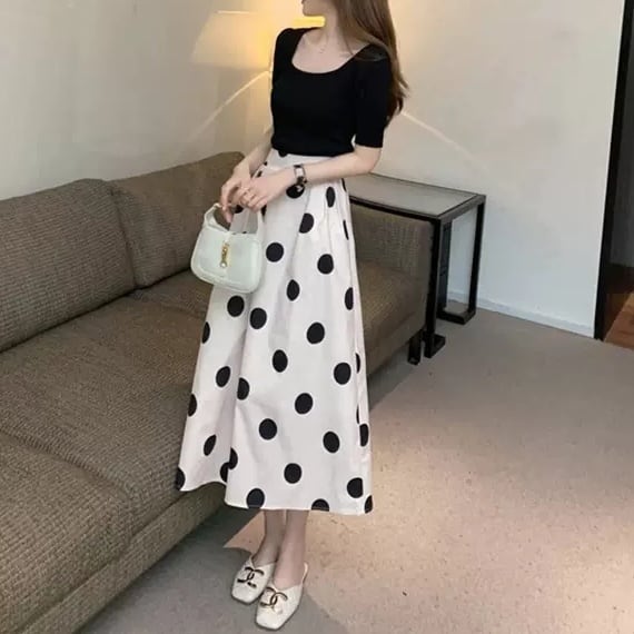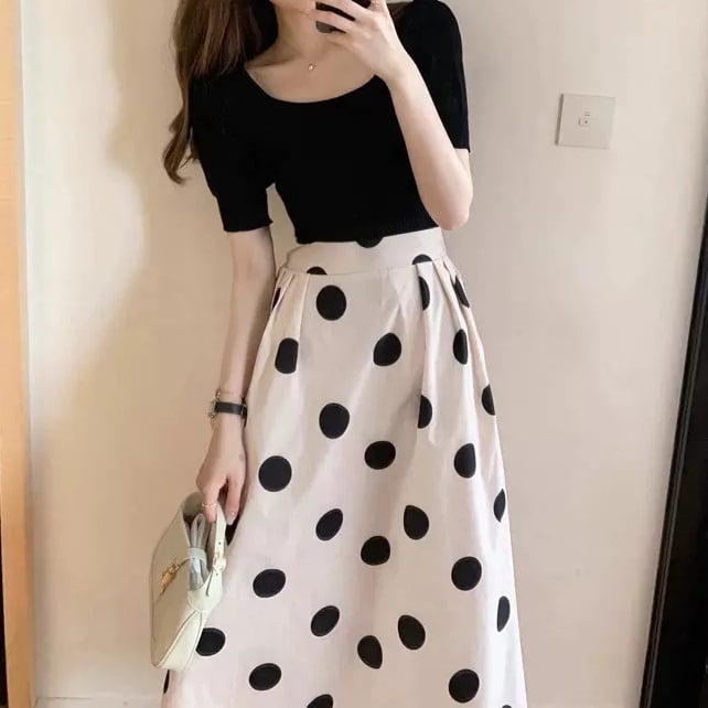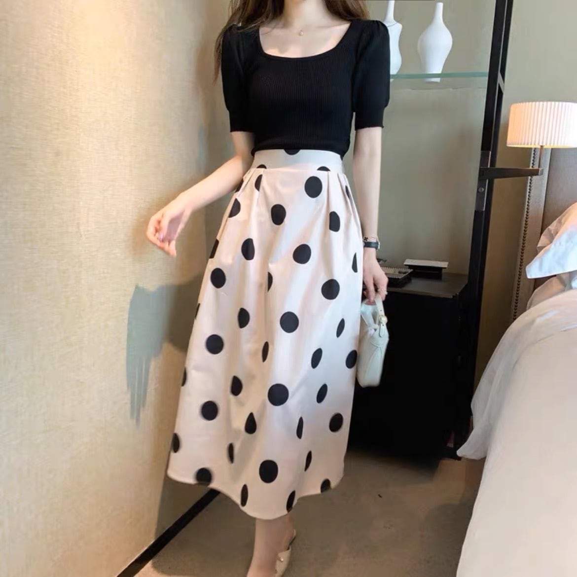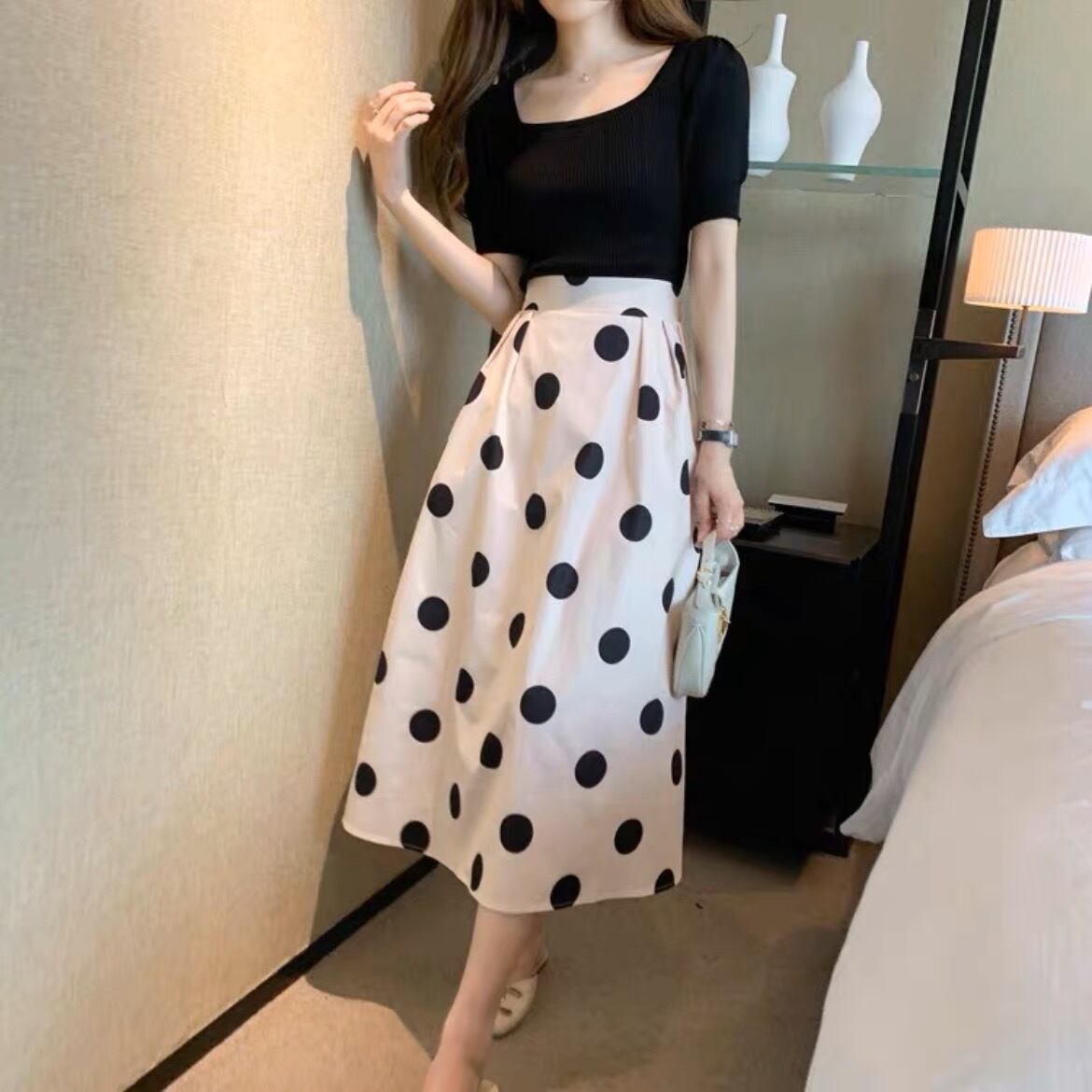 半袖カットソー&ドットスカート♡2ピース〈NEW〉