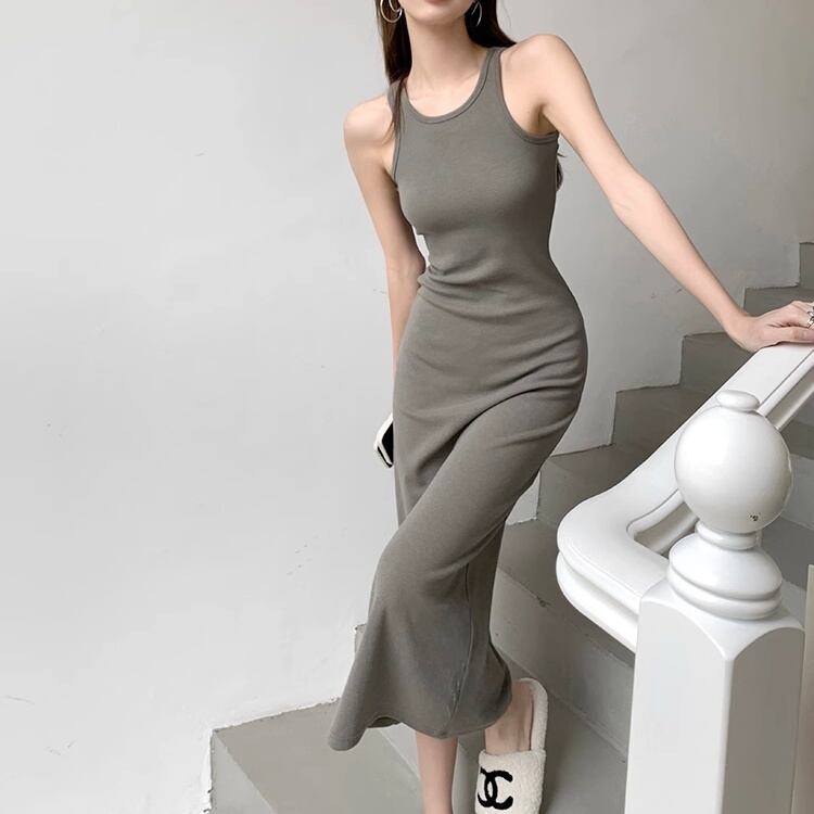 動きやすい素材のノースリーブバックオープンワンピースが登場!背中の開いたデザインがセクシーさを演出しヘルシーな印象を与えます。