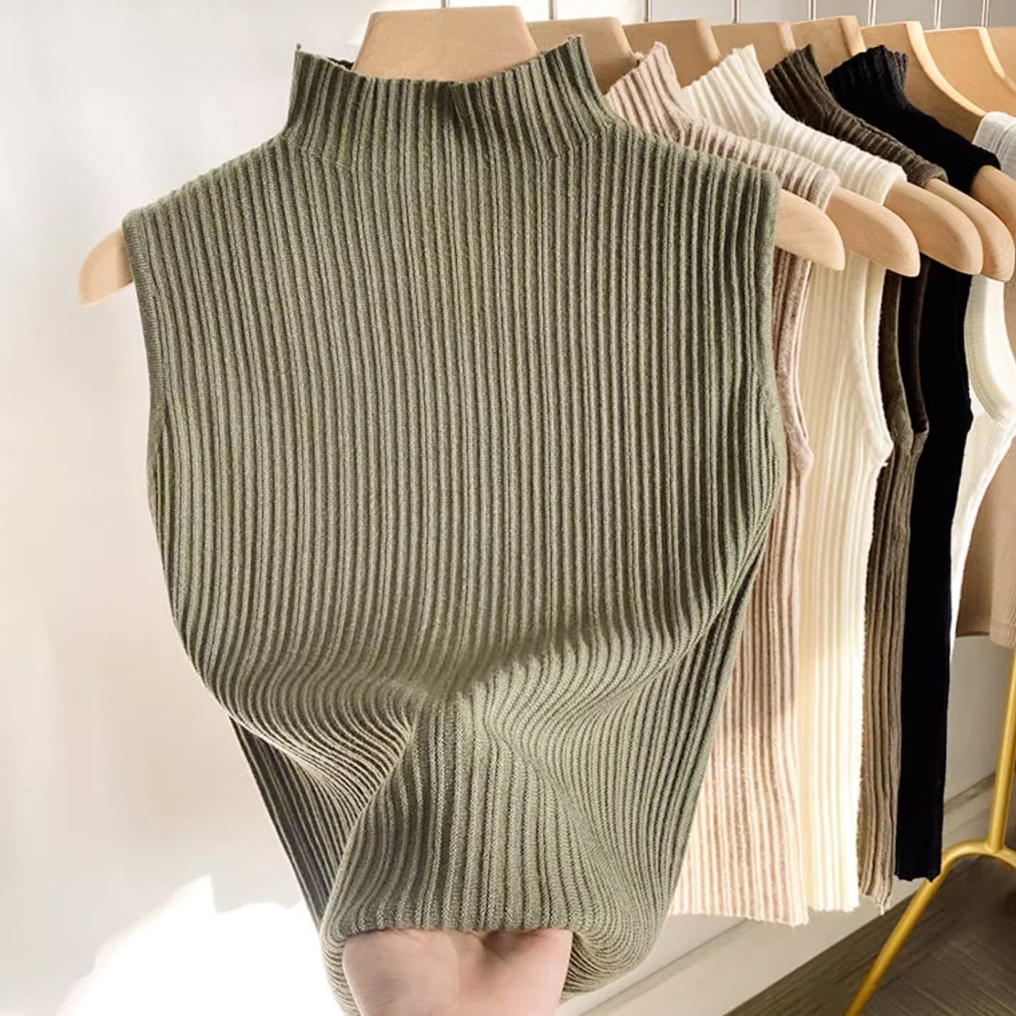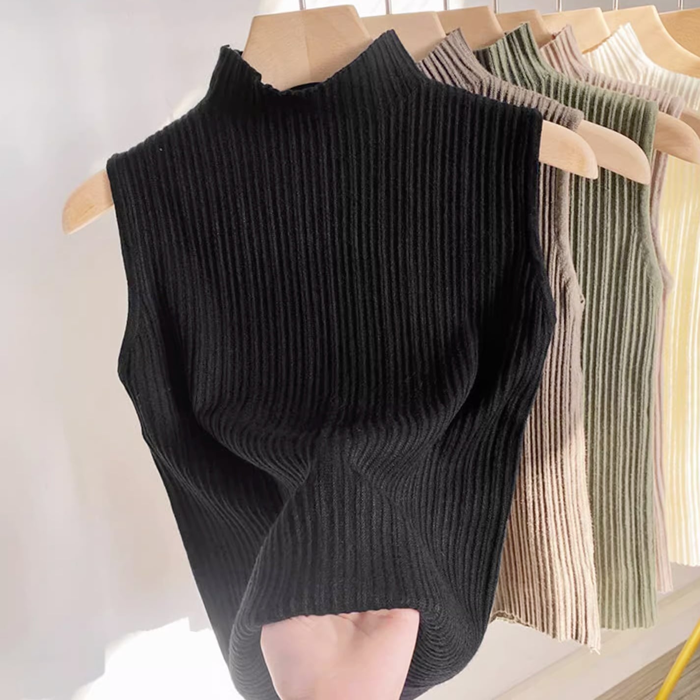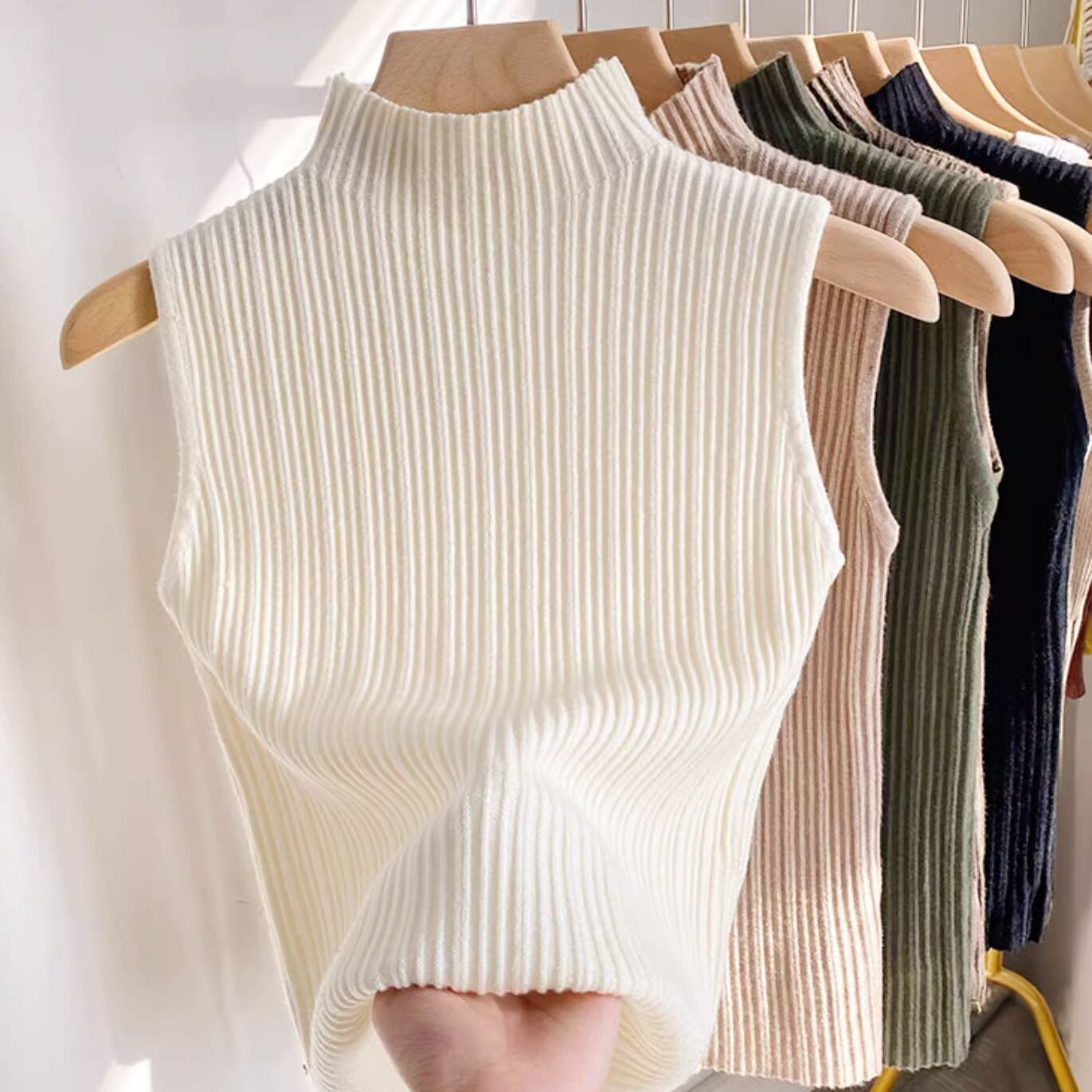 柔らかな肌触りとリブ編みのデザインが魅力のノースリーブリブニットプルオーバー。体にフィットするシルエットで女性らしさを引き立て、さらに着るだけでおしゃれ感を演出します。