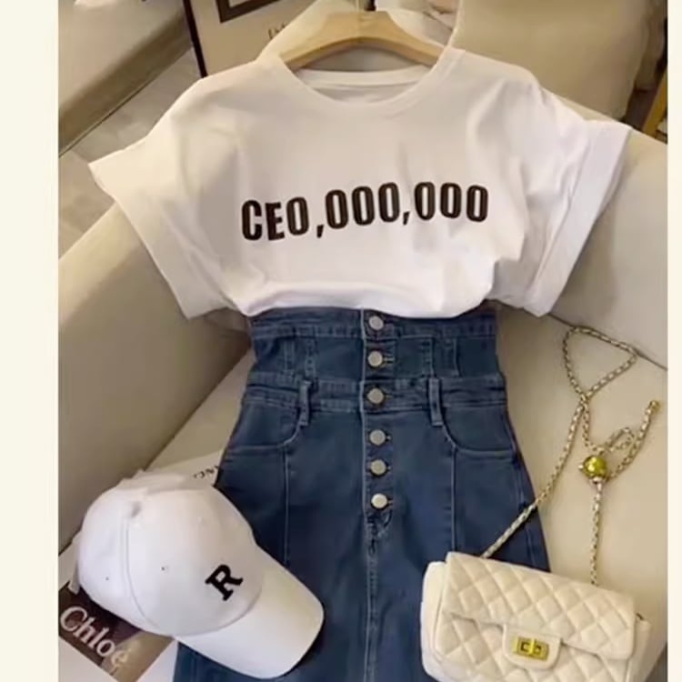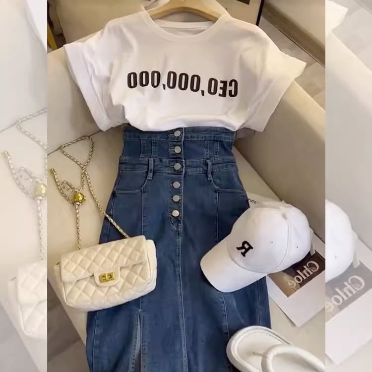 カジュアルでおしゃれなコーディネートが完成する白Tシャツとフロントボタンのデニムスカートのセットです。シンプルながらもトレンド感のあるデザインで、どんなスタイルにも合わせやすく、幅広いシーンで活躍します。