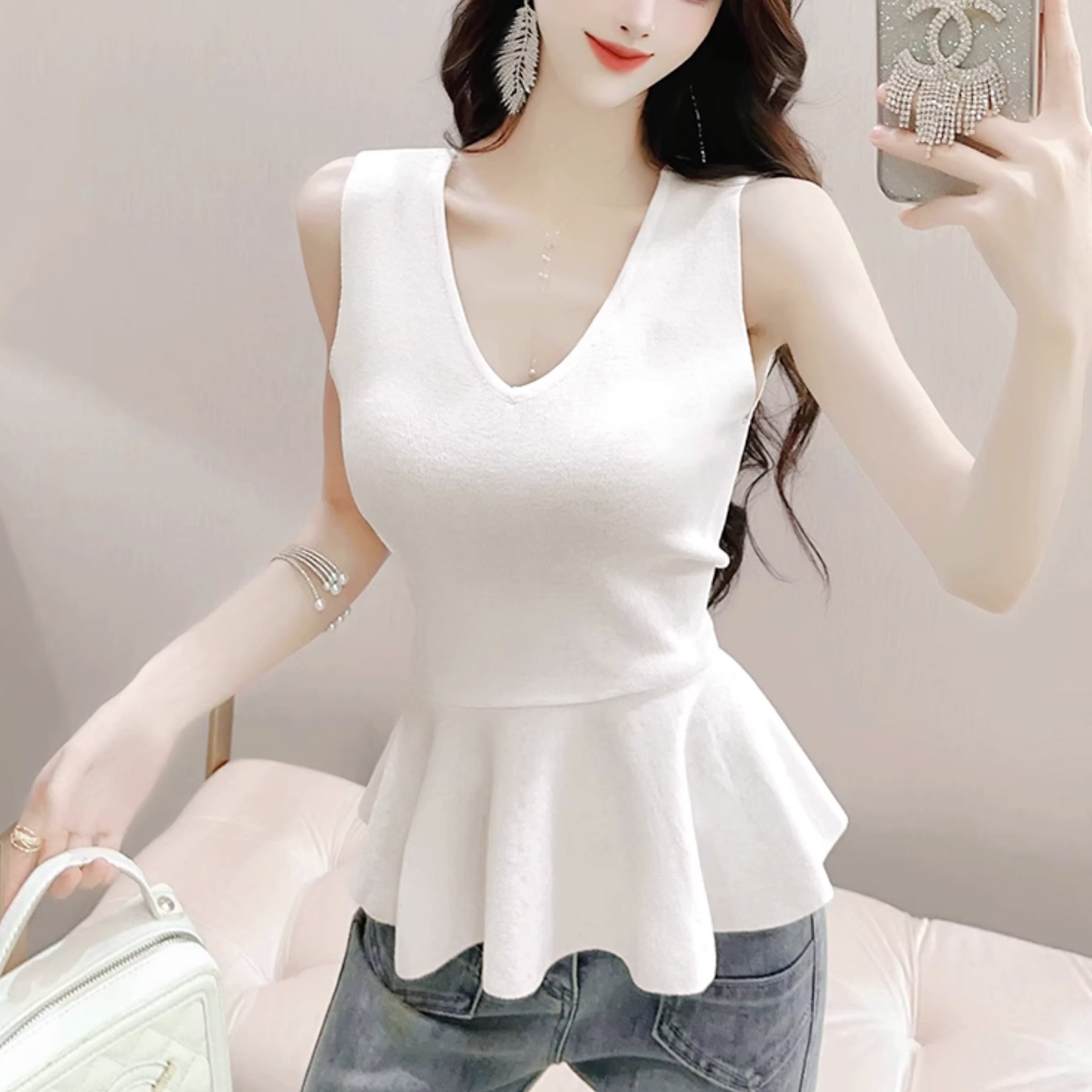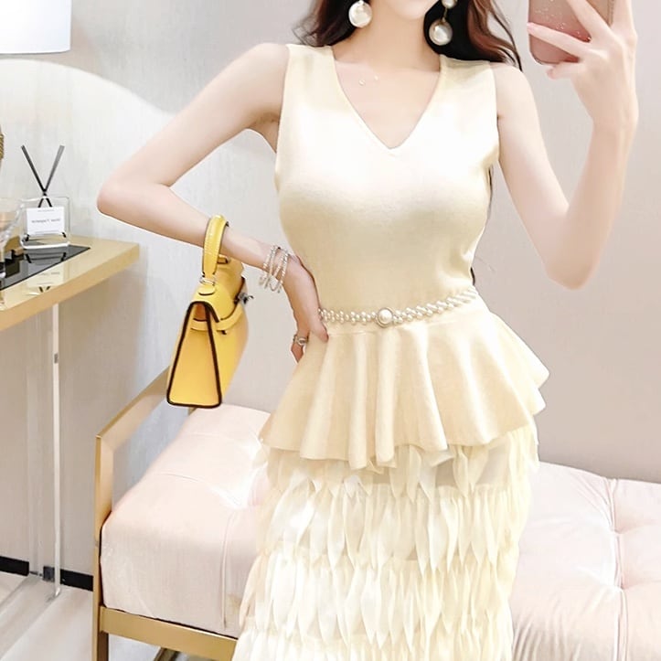 シンプルでありながら、華やかさも兼ね備えたペプラムトップスです♡ノースリーブのデザインながらもペプラムがアクセントになっていて、上品で可愛らしい印象を与えます♡