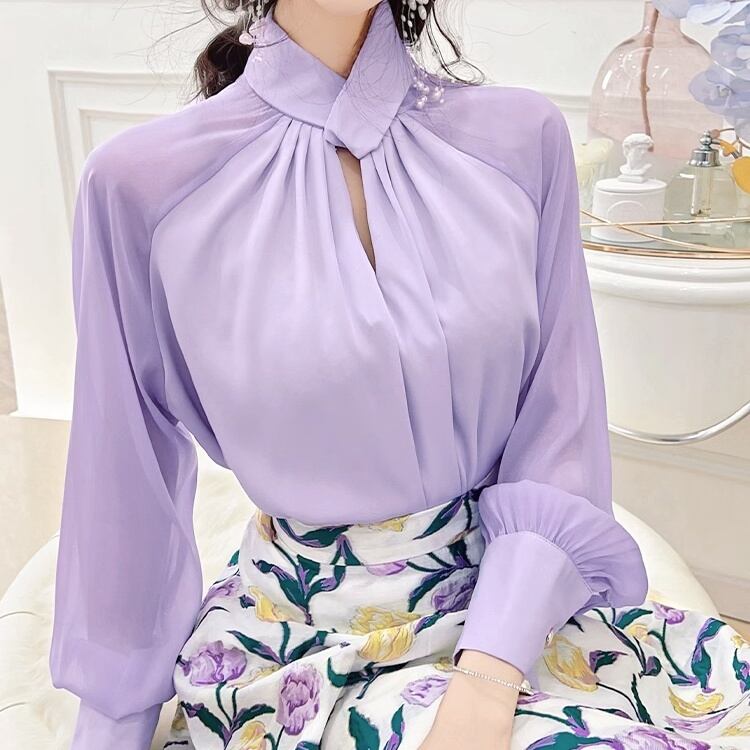 ハイネックボウタイブラウス