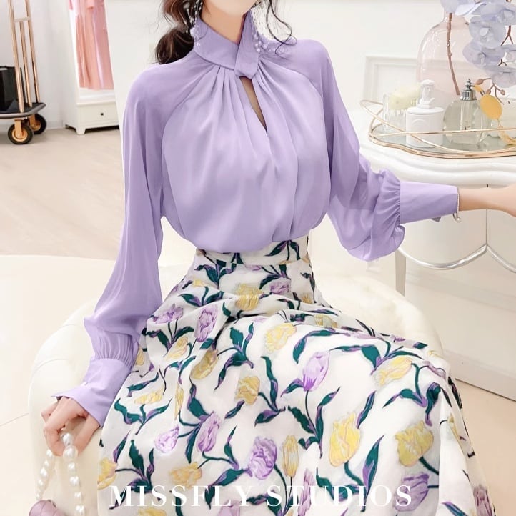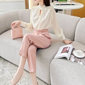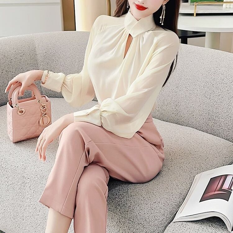 ハイネックボウタイブラウスは、品のあるデザインと女性らしいシルエットが魅力です♡首元のボウタイが華やかさをプラスし、エレガントな印象を与えます♡