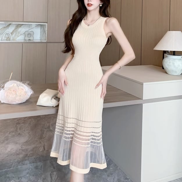 裾シアーリブキャミワンピース〈NEW〉