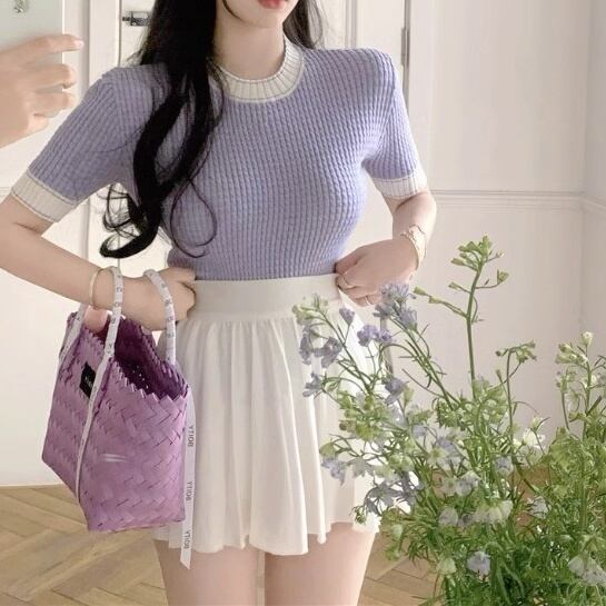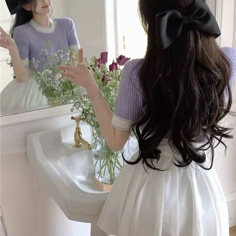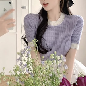 バイカラー半袖ニットトップス〈NEW〉