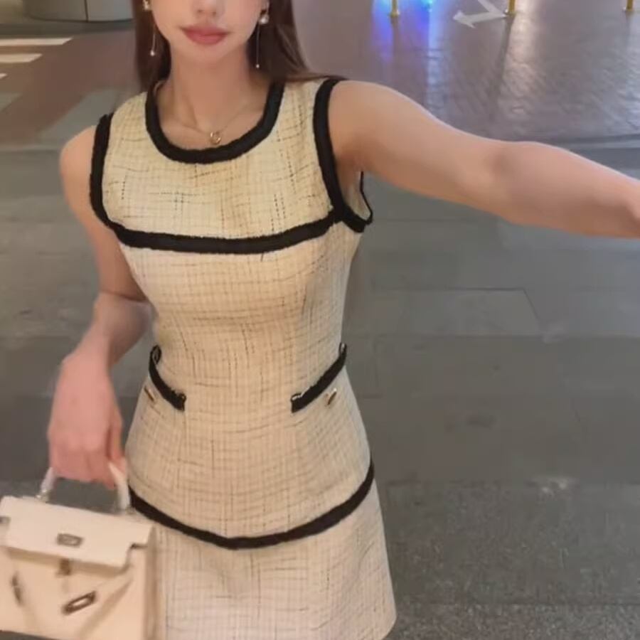 上品なツイードにブラックのラインがアクセントのラインツイードワンピー♡上品さや女性らしさを引き立ててくれる一枚です!