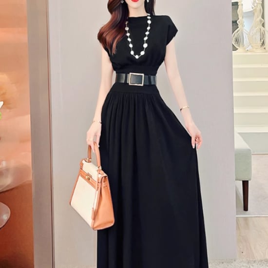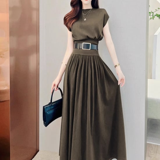 〈ベルト付き〉スリムトップス&ハイウエストロングスカート セットアップ〈NEW〉