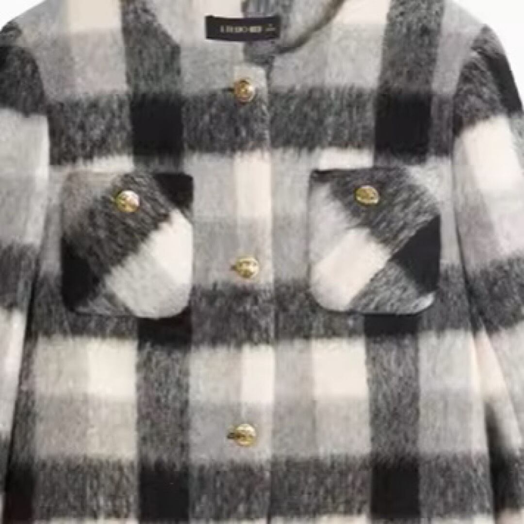 チェック柄ノーカラーウールジャケット 〈2023 AW〉