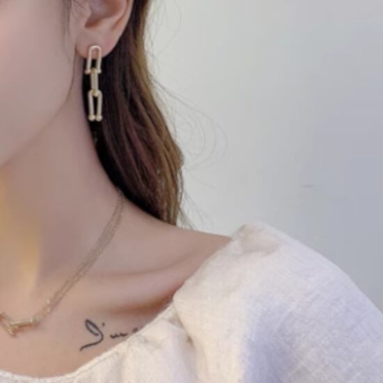 上質な輝きを放つチェーンゴールドピアス。