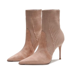 クラシックなハイヒールに、ソックスブーツの快適さをプラスした、新しいスタイルの一足です。 柔らかな素材とフィット感が足にしっかりとフィットし、歩きやすくなっています。