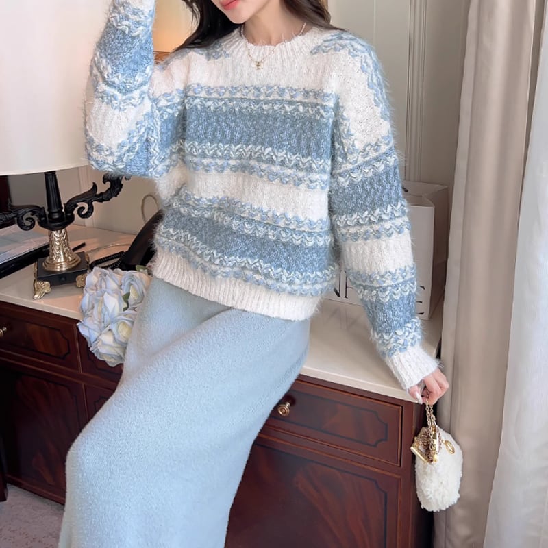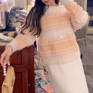 華やかなカラーバリエーションが揃ったルーズボーダーニットセーター。