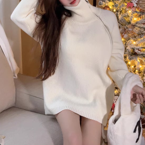 オーバーサイズでゆったりとしたシルエットのサイドジッパールーズニット。
