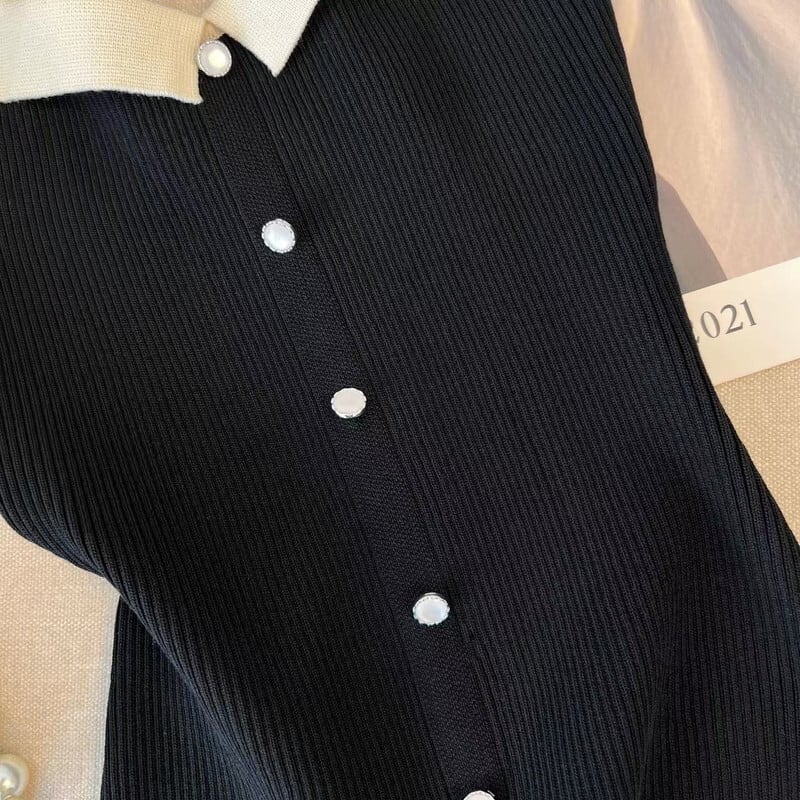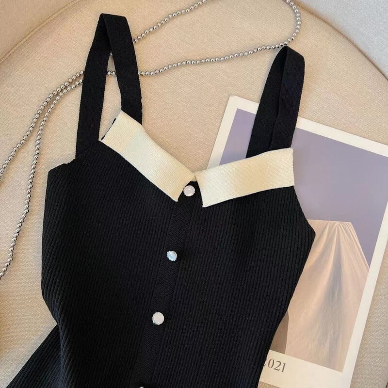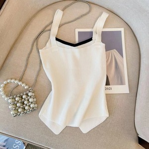 爽やかでスタイリッシュなノースリーブバイカラーニットトップス。