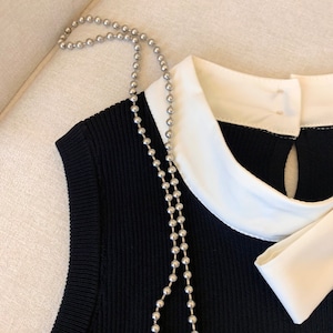 ボウタイのリボンを前で結んでフェミニンな雰囲気を添えてみて♡