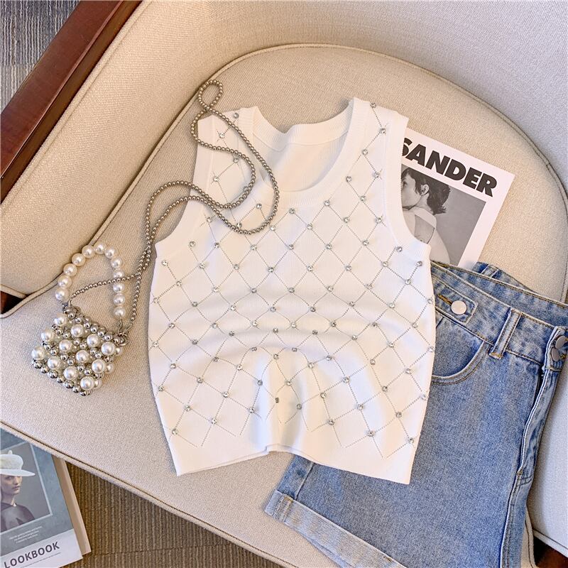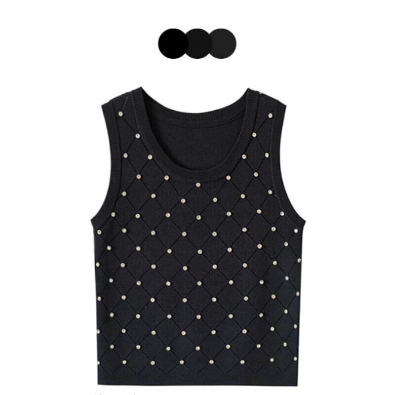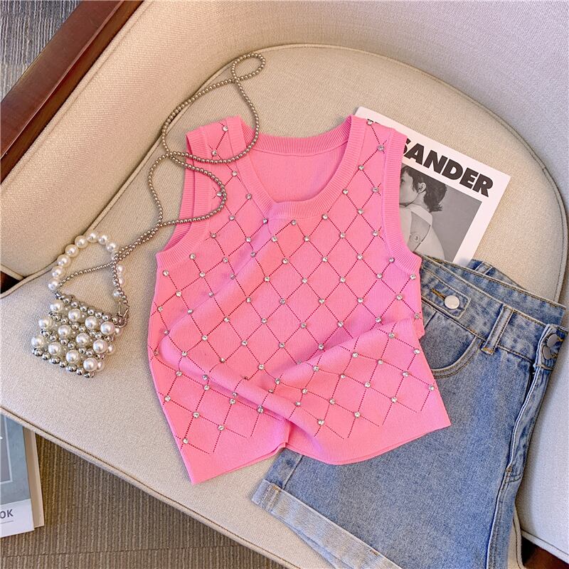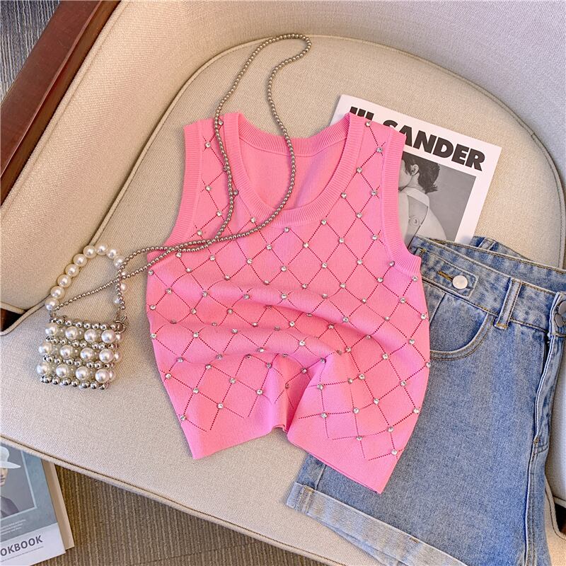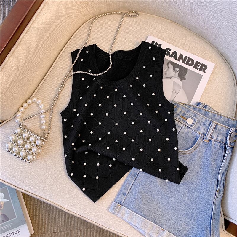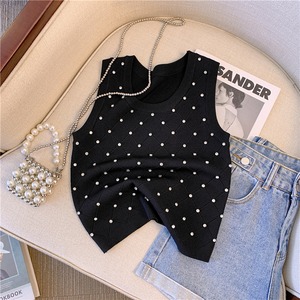 ビジュー付きダイヤモンドパターンニットトップ〈SS〉