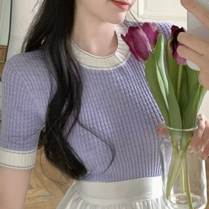 ラウンドネック半袖ニットトップ〈SS〉
