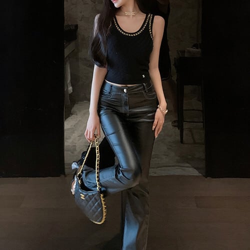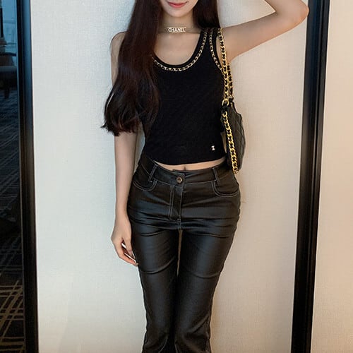ベーシックなタンクトップに、首元に施されたチェーンがエレガントな印象を演出してくれます。