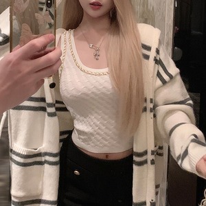 チェーン装飾が上品なアクセントとなったニットタンクトップ。
