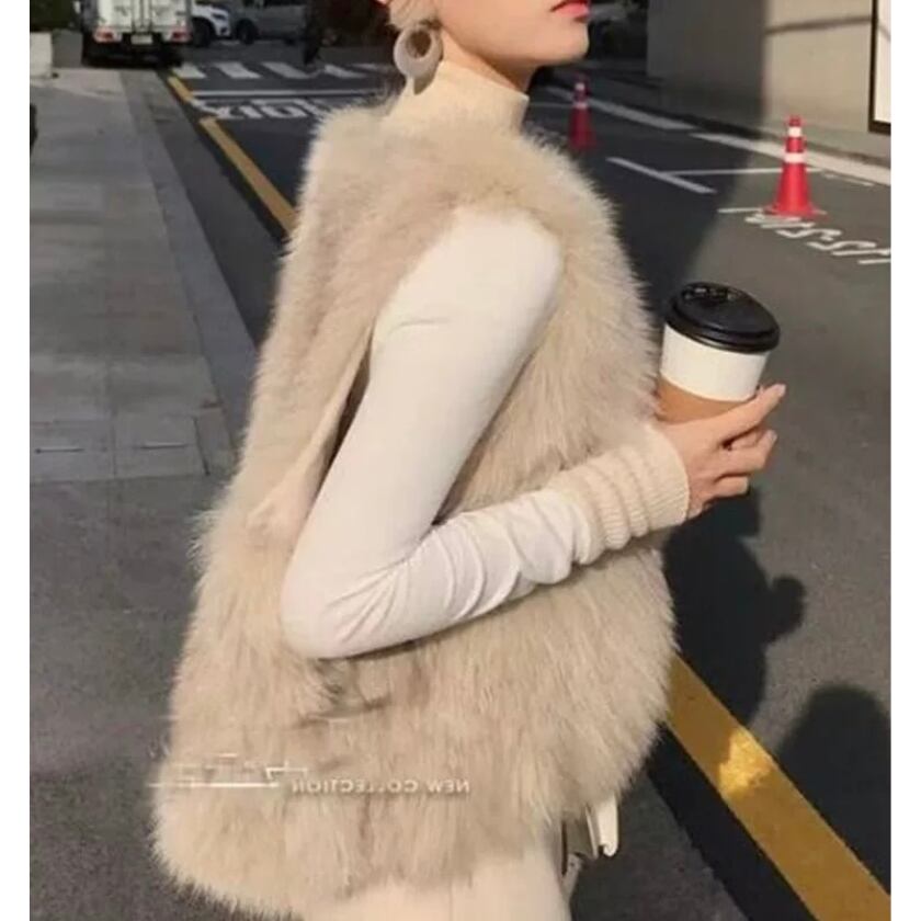 高見え♡洗練されたラウンドネックデザインが魅力のフェイクファーベスト。