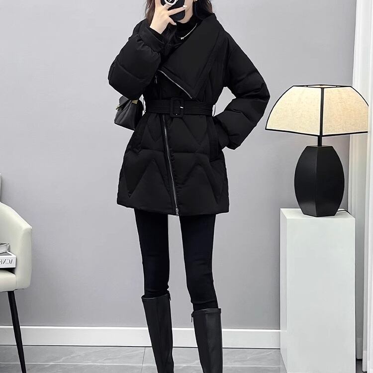 スタイリッシュでありながら、利便性と温かさを兼ね備えたベルト付き中綿ショートジャケット。しっかりとした中綿素材が寒さをしっかりと防ぎつつ、ウエストを引き締めるベルトデザインが特徴です。